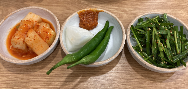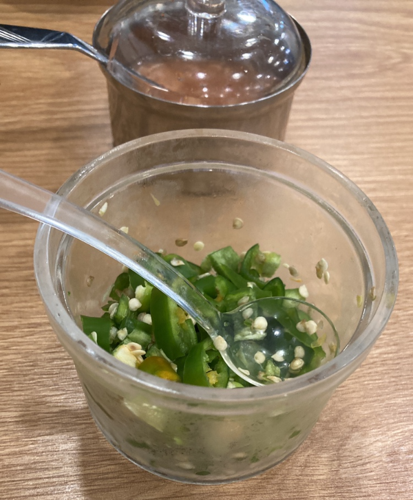 이어서 나온 새우젓과 청양고추. 국물이 생각보다 담백해서 새우 젓을 세 스푼 넣었고 청양고추는 한 스푼 넣었다.