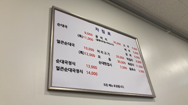 순대국을 기본으로 골머리, 머리고기, 순대 등을 판매 중이었다. 필자는 기본 순대국으로 선택.