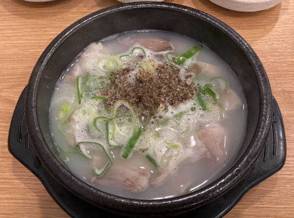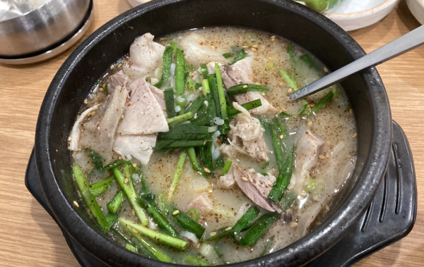 곧 기본 찬과 함께 뜨끈뜨끈해 보이는 순대국이 나왔다. 고기의 양이 꽤 많았고 순대는 4 덩이, 부속보다는 고기 위주로 들어있었다. 기본 찬은 가게 한편에 있는 셀프 바에서 리필 가능하다.