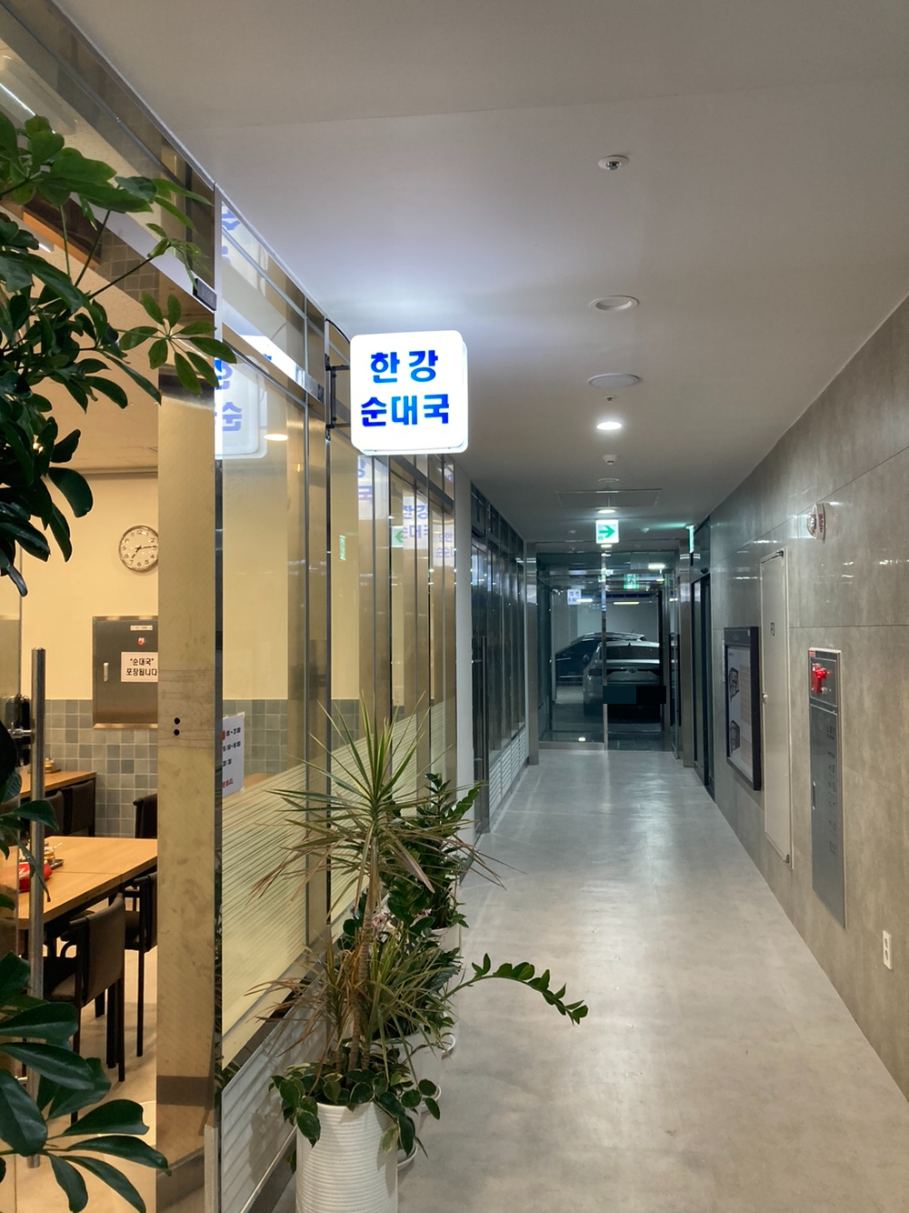 볼 일이 있어 친구와 함께 덕은동에 있는 '한강 순대국'에 방문했다. 한창 입주 중인 건물이라 그런지 상가 라인이 한산한 느낌이었다.
