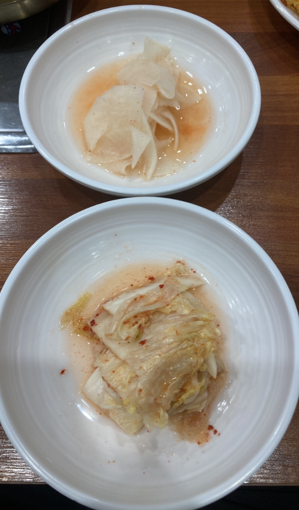 기본 반찬으로 김치와 무절임이 나왔다. 무절임은 새콤한 맛이었고 김치는 거의 매운맛이 안 느껴지는 백김치 같은 느낌이었다.