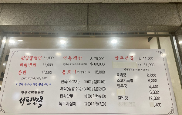 평양냉면을 아직 먹어보지 못했지만 한 번 드셔보고 싶으신 분, 평소 평양냉면을 좋아하시는 분들은 서평면옥에 한 번 방문해 보시기를 추천드린다.